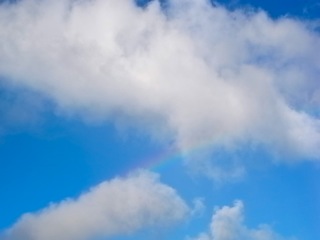 写真中央やや左に小ちゃく虹が映ってます。かわいい虹です。