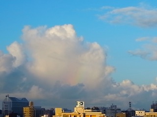 雲の中の小さな虹を発見です。今日もラッキーな一日のスタート。