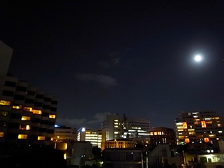 自宅に戻り、ピッツァとビールとアイスクリームで観月会。