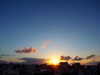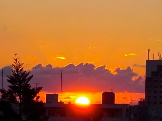 昨日も、雲の合間から真っ赤な夕陽を観ることができました。