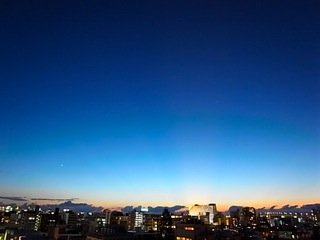 夕陽が沈むと、稜線が紅く染まります。鮮やかな紅、印象派。
