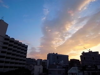 明け方、那覇市泊上空は雲が広がっていました。