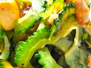 この時点で取り出せば、ビールのおつまみにもなるゴーヤー料理。