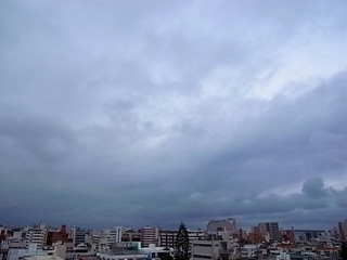 今日の沖縄の空。明け方から厚い雲に覆われている那覇地方。