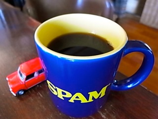 「SPAM」のマグカップ with Mini Cooperで。