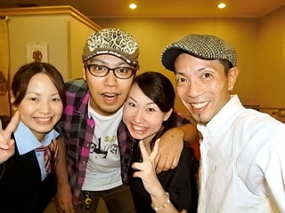 幸せそうな照屋夫妻と担当のチャーミングな西江さん。