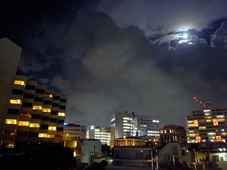 昨晩の北東の空。雲の合間からお月様が顔を出しました。月見酒です。
