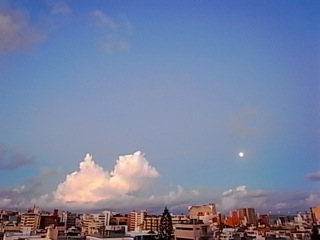 ということで、今日のカバーフォトは朝焼けとお月様のクローズアップで。