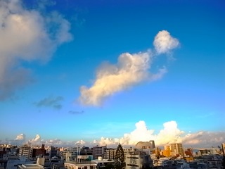 青い空に、雲がポッカリ浮かび穏やかな朝です。