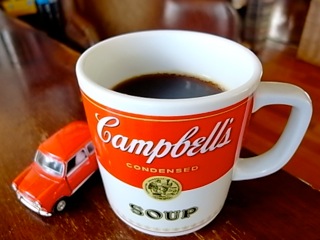 キャンベルのマグカップ with Mini Cooperで寿珈琲です。
