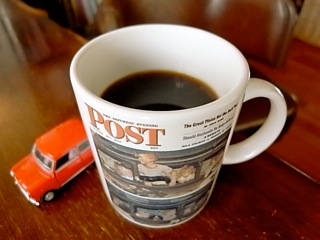 ノーマン・ロックウェルのマグカップ with Mini Cooperで。