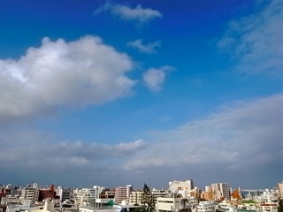 今日の沖縄の空。北風が強いですね。みーにしでしょうか?