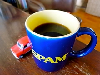 「SPAM」のマグカップ with Mini Cooperで。