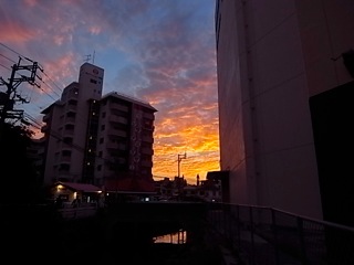 昨日の沖映通りから観た夕焼け。とてもキレイでした。
