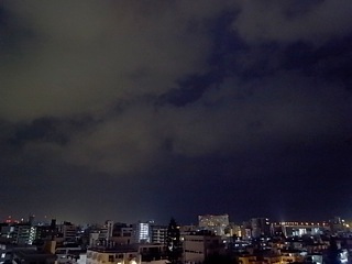 すっかり夜明けが遅くなりました。早い速度で雲が流れてます。