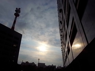 昨日の夕陽。南よりの湿った風が夕方から吹きはじめてました。