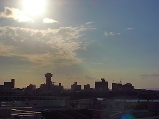 こちらは、西陽が眩しい浦添オフィスからの風景。