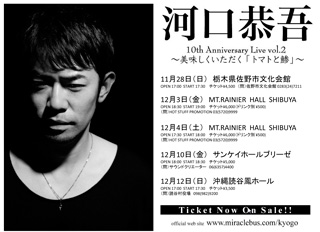 河口恭吾10周年ライブ 今週末開催!! 10 12/12