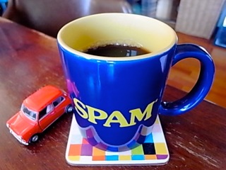 「SPAM」のマグカップ with Mini Cooperで。
