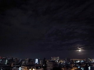 今日の沖縄の空。午前5時。東シナ海に沈むお月様。