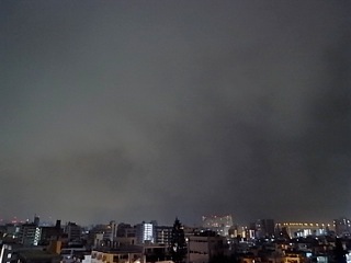 午前8時半ごろの那覇の空。雲が一面広がって小雨が降っています。