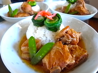 メニューは、これまた毎年恒例の鶏肉、ソーキ、三枚肉のトロトロ煮込みです。