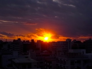 昨日の夕陽。紅(くれない)に染め上げた夕陽。