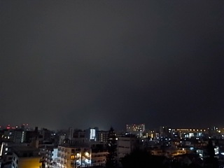 今朝の6時半頃の那覇市南西の空。夜明けが遅い南国の朝。