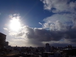 雨雲と太陽の競演。南国沖縄、冬の空です。