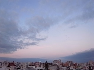 今日の沖縄の空。明け方は少し雲が出ていました。