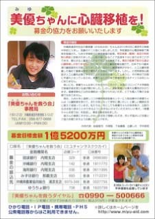 本日お届けするのは、「美優ちゃんに心臓移植を!」の募金に関して。