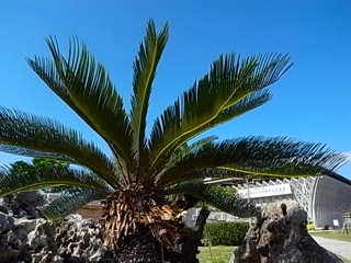 ソテツの深い緑と空のコントラスト。