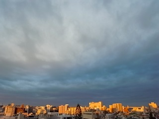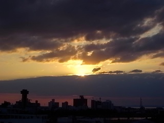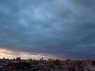 紅に染まる那覇の街。ドラマチックな空模様の変化。