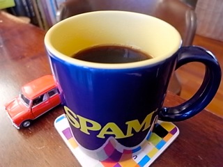 「SPAM」のマグカップ with Mini Cooperで。