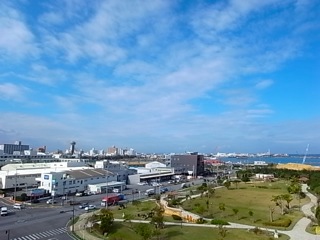 現在の浦添の空。陽が射したり雨が降ったり忙しいお天気。