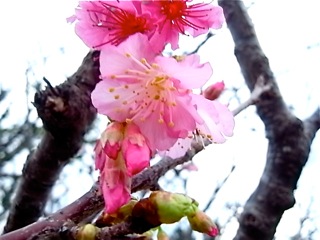 南国沖縄らしい青空、そして濃いビンクの桜、春よ恋!!