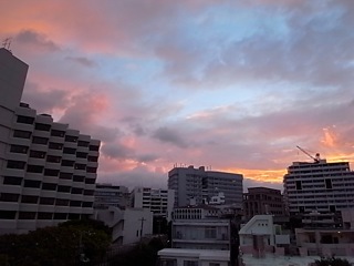 淡い陽射しを受けてパステルに染まる那覇の街。