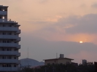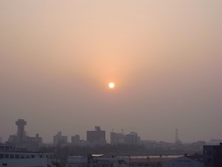 とても控えめな朝日の存在(笑)、煙霧の影響です。