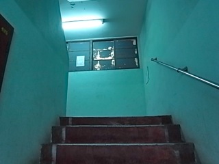 昭和な色彩の水上店舗へ続く階段。