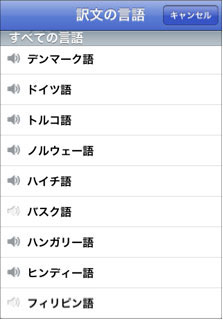 スピーカのマークが付いている言語は、音声の読み上げにも対応しています。