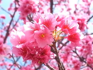 写真のようなクリアな青空と濃いピンクの満開の桜、
