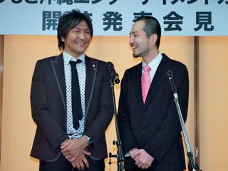 会見にはM-1に準優勝して以来、引っ張りだこのスリムクラブが登場。
