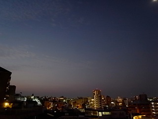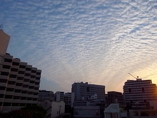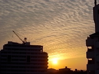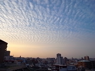 東南東の空。朝日が昇る時間帯。空には波のような紋様の雲が広がってます。