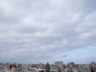 明け方は、雲が広がっていました。心を落ち着かせる沖縄の空。