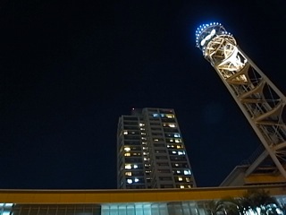 那覇市おもろまちにあるNHK沖縄放送局の夜のタワー。