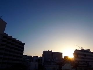 ビルの谷間からのご来光。エネルギーを充電です!!