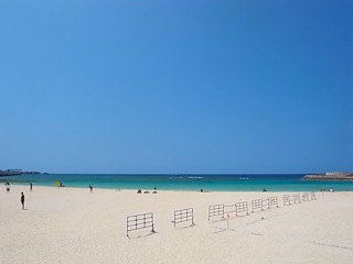 宜野湾市のトロピカルビーチで。青と白のコントラストが美しい。