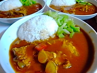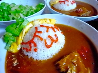 メニューは、「トロトロ軟骨ソーキのトマトオムカレー セロリを添えて」です。