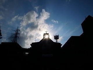 チャペルの鐘の中に太陽が入った瞬間。希望の光です。