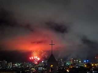 那覇ハーリーの締めくくりの花火、とても華やかでした!!
